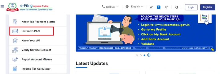 - Step 2: Click on “Instant e-PAN” under “Quick Links”.