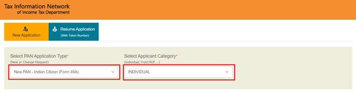 - Step 3: Select form 49A (for Indian citizens) or form 49AA (for foreigners) and choose the applicant category (individual).