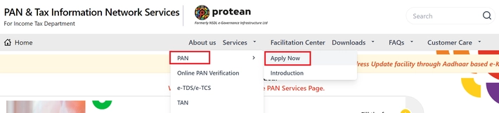 Method 2: How to Apply PAN Card Online with Aadhaar Card via NSDL (now Protean eGov Technologies Ltd)