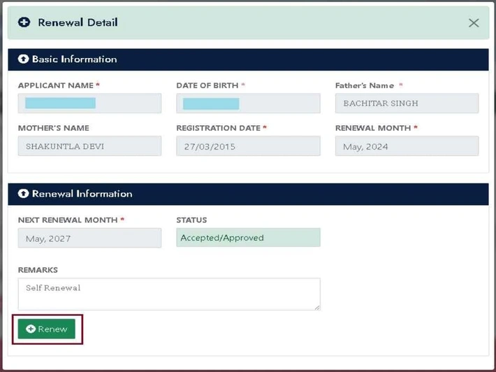 - Step 3: Click the Renew Button: Upon final submission, you will receive a renewal confirmation message.
